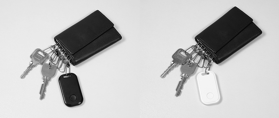本体サイズは、横30mm×縦55mm、厚み6mm、重さ約9gで、ストラップホールがあるので貴重品への装着もしやすくなっています。ブラックとホワイトの2色からお好みで選ぶことができます。