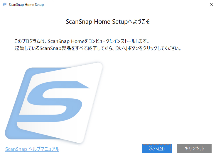 セットアップの際にはパソコンが必要となりますので、ノートPCを使ってScanSnapのセットアップを進めます。まずは、ScanSnapのソフトウェアをノートPCにインストールします。