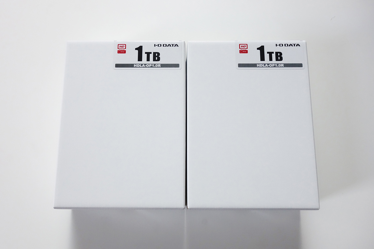 (写真)購入したHDLA-OP1.0R(WD Red)×2 外箱