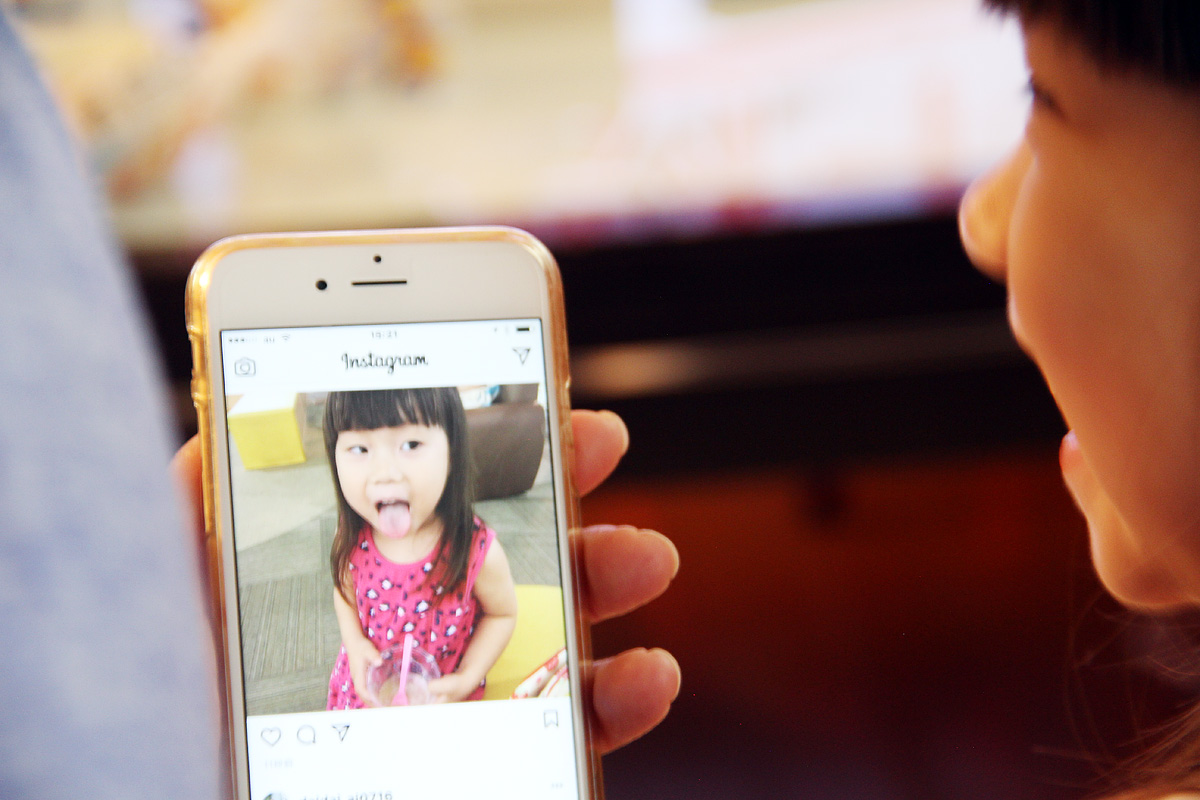 (写真)「Fotogenic」アプリを使ってInstagramへ投稿している様子