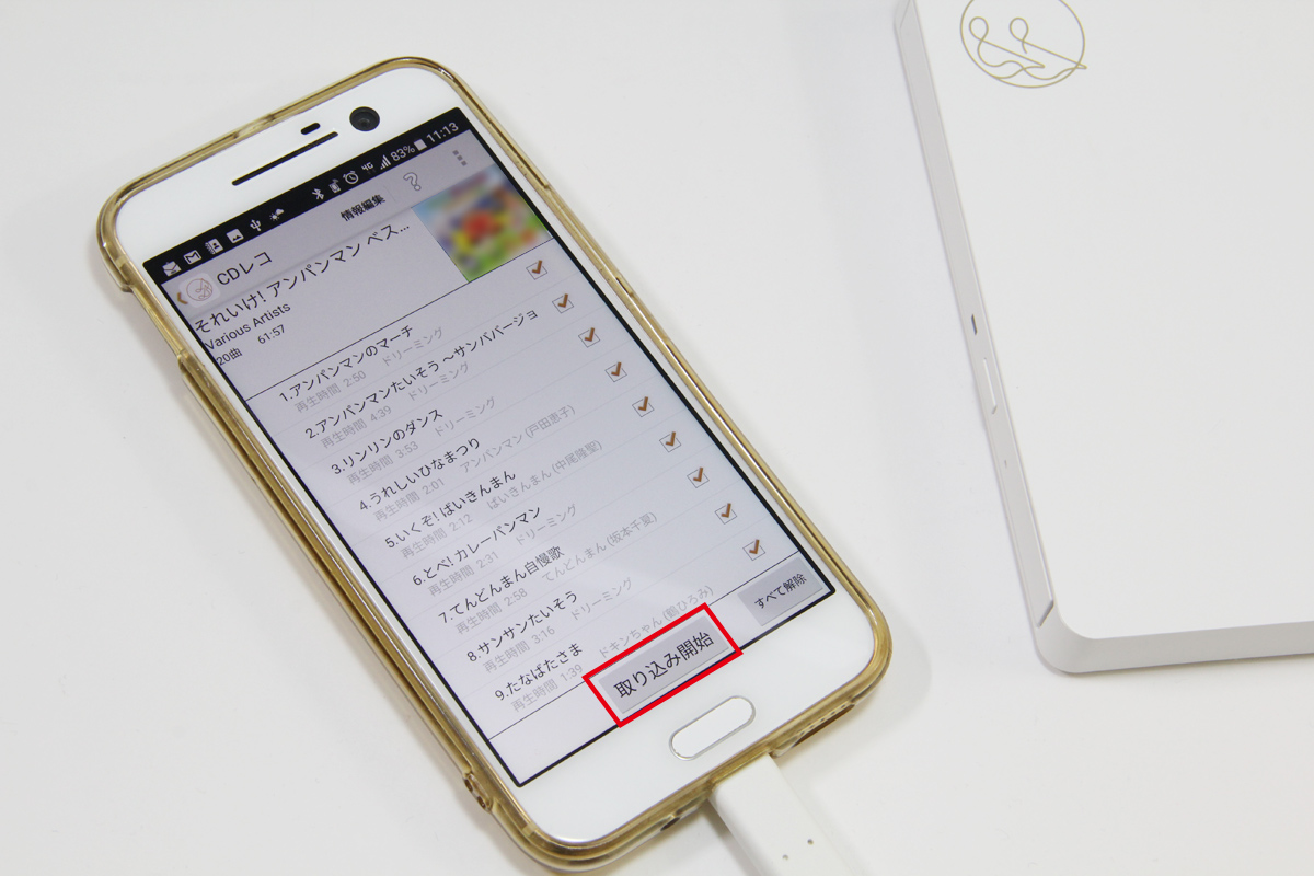 まずは、「CDレコ」と「CDレコアプリ」を使って、カラオケしたい好きな音楽CDをスマホやタブレットに取り込みます。