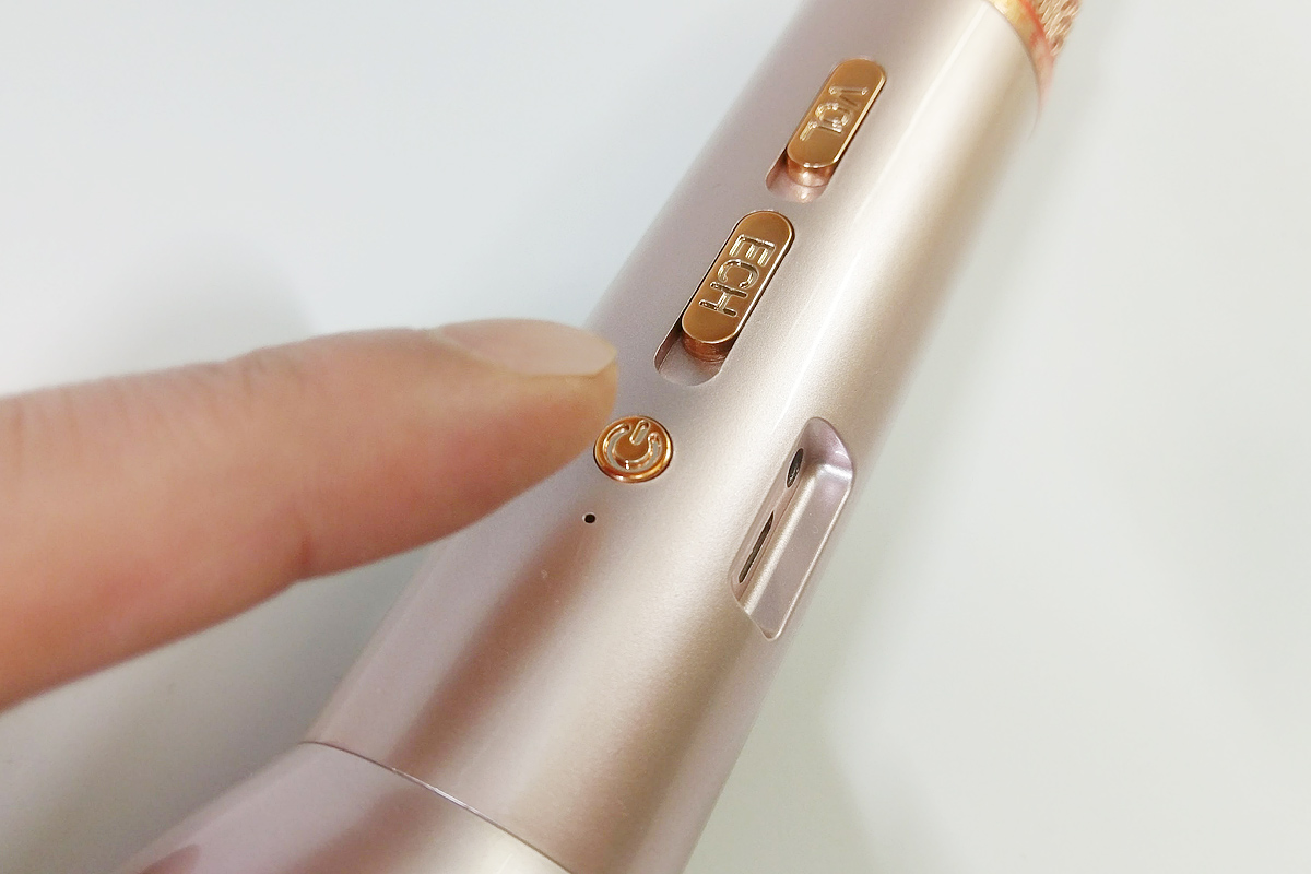 音楽CDの取り込みが完了したら、カラオケマイクとスマホをBluetooth®接続します。先にカラオケマイクの電源をオンにします。