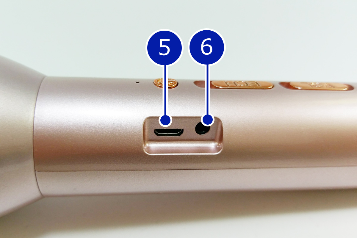 ⑤充電ポート(Micro USB):本体の充電ほか、端末との有線接続にも使用します。