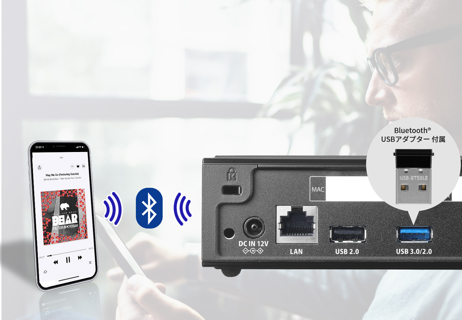 USB-DAC搭載オーディオ機器(単体、CDプレーヤー、アンプ、ヘッドホンアンプなど)を接続することで、サーバー内蔵のPCM/DSD対応ネットワークオーディオプレーヤーとして利用できます。