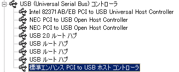 「USB(Universal Serial Bus)コントローラ」をダブルクリックして表示される内容をご確認ください。
