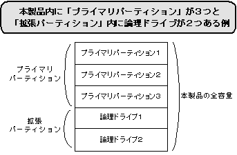「基本MS-DOS領域」は「拡張MS-DOS領域」よりも優先されます。従って、本製品に「基本MS-DOS領域」があった場合、パソコンにすでに接続されているハードディスク内の「拡張MS-DOS領域」よりも優先されます。