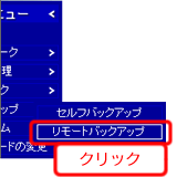 詳細メニューの[バックアップ]→[リモートバックアップ]を順にクリックします。