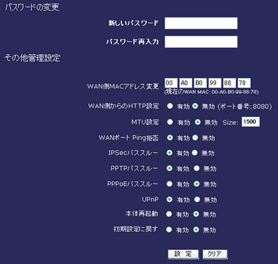 | WAN側MACアドレス変更 |