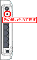 背面の[リセット]スイッチを細いピンなどで5秒以上押しつづけます。