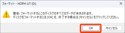 データが必要な場合は、必ずほかのハードディスクなどにバックアップを行ってからフォーマットの操作を行ってください。