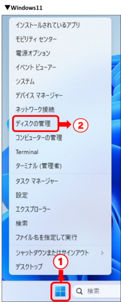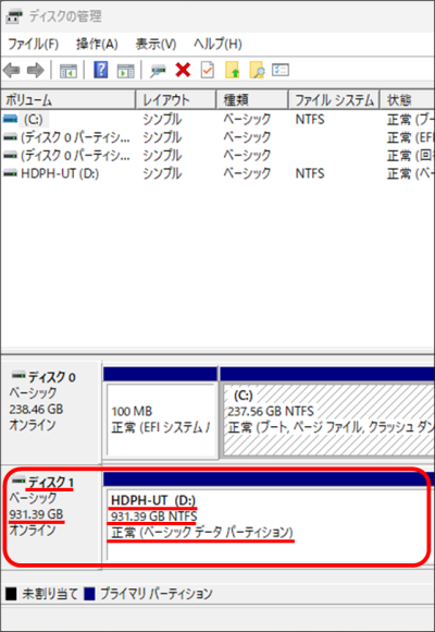 「ディスクの管理」で認識されているか確認したい/認識されない場合の対処