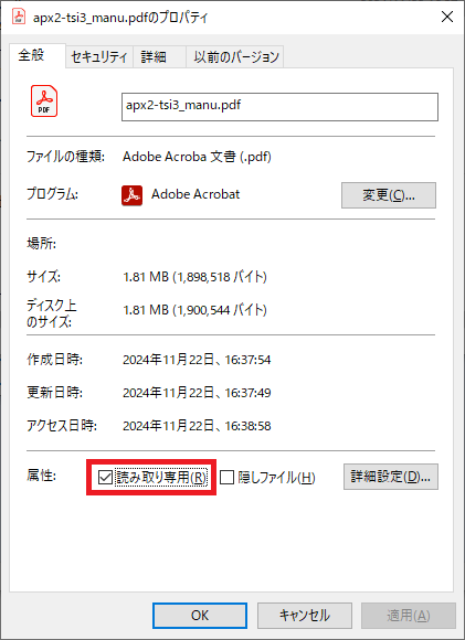 属性が読み取り専用のファイルに対してはタイムスタンプ処理することはできません。