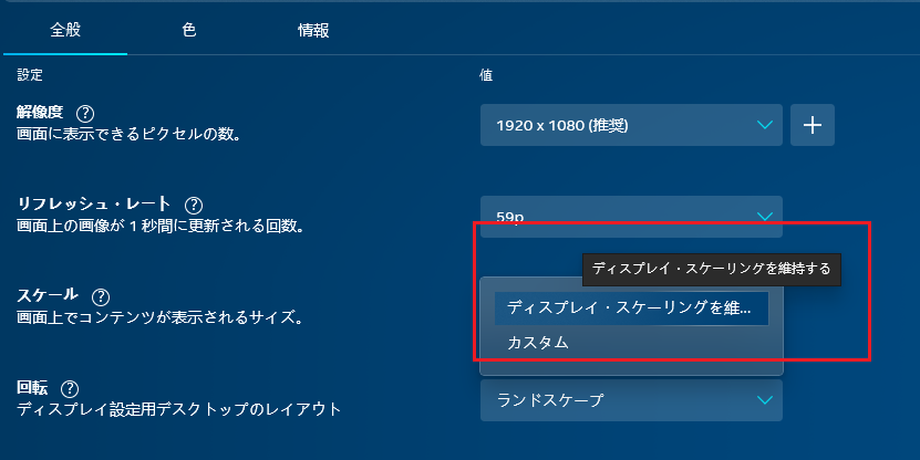 ディスプレイの設定を維持しますか?とメッセージが表示された場合は、「変更の維持」を選択します。