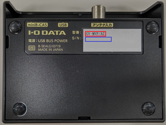 製品の底面などに型番・シリアル番号(S/N)の記載がありますのでご確認ください。