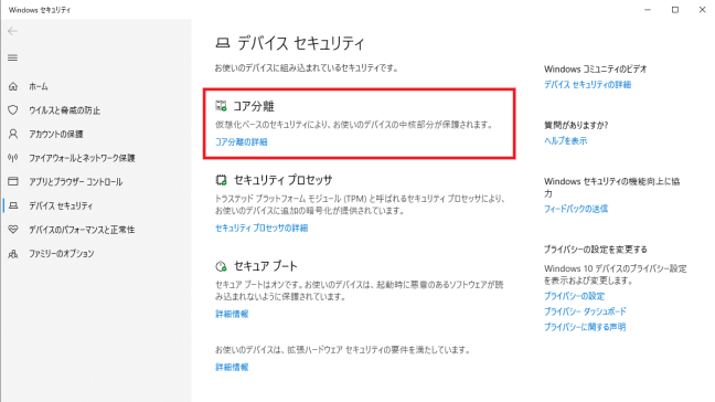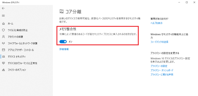 コンピュータ側のセキュリティ設定でメモリー整合性の設定がONになっていると、ドライバーの導入がうまくいかず、デバイスマネージャーで「デバイスドライバーを読み込むことができません。ドライバーが壊れているか、ドライバーがない可能性があります。(コード39)」とエラーが表示される場合がございます。