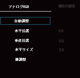 アナログRGBでの接続時に画面がずれて表示された場合は、自動調整機能で改善する可能性がございます。