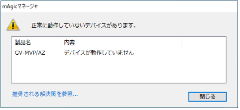 ・「正常に動作していないデバイスがあります」というエラーが出る