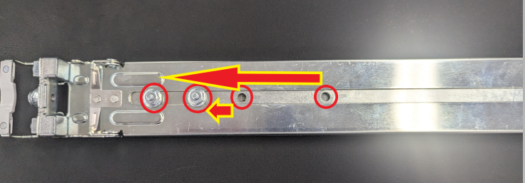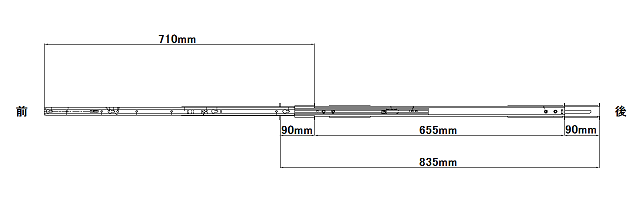 ※外側レールのネジ位置をずらすこと最大795mmのラックに取り付け可能となります。