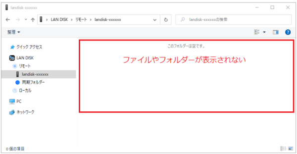 【LAN DISK CONNECT】「このフォルダーは空です」と表示されてファイルやフォルダーが表示されない、または表示に時間がかかる