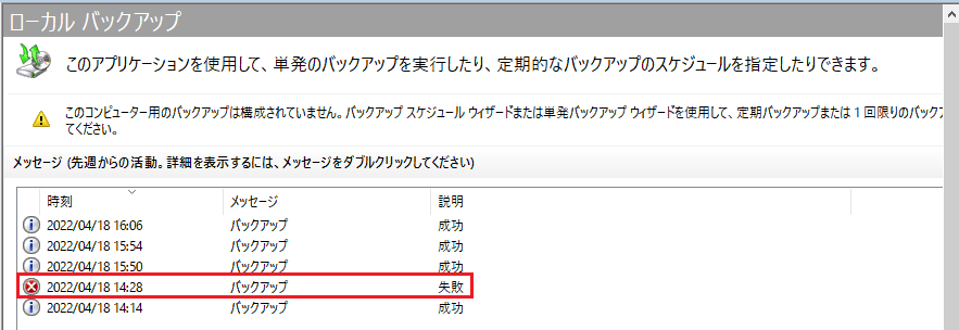Windows Server バックアップに失敗した場合、以下を順にご確認の上、対処を行ってください。