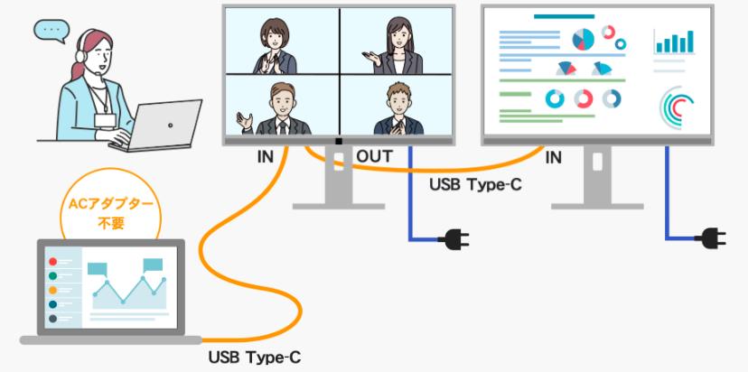 対応商品はUSB Type-C接続に対応した機種、DisplayPort接続に対応した機種がございます。