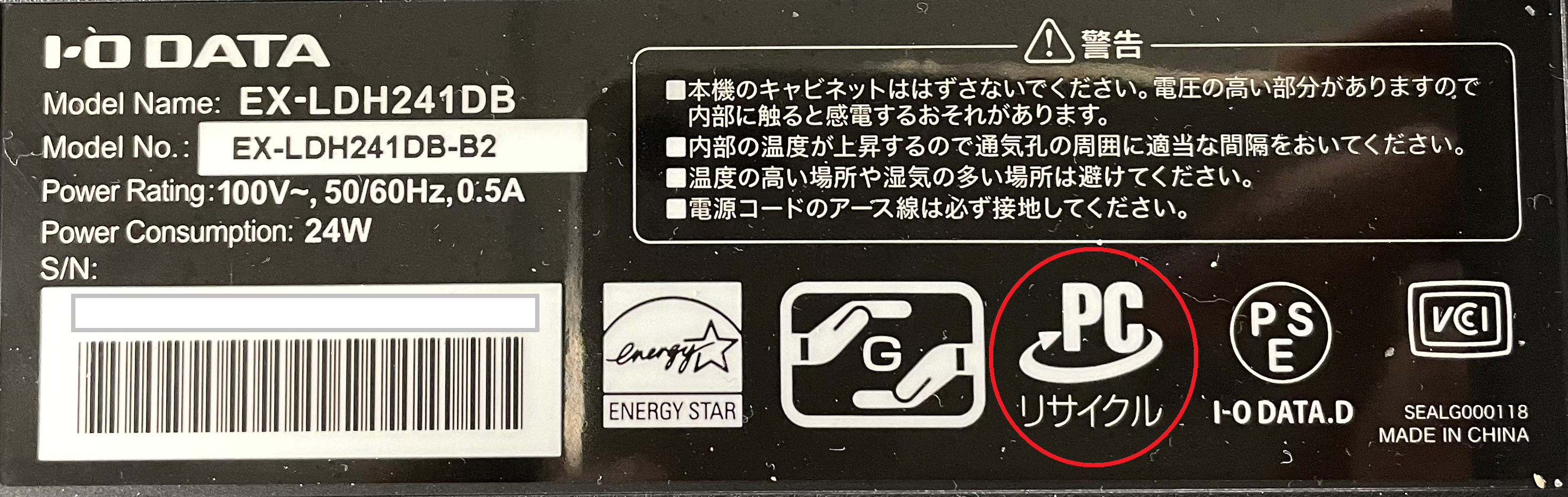 モニターにリサイクルマークはありますか?