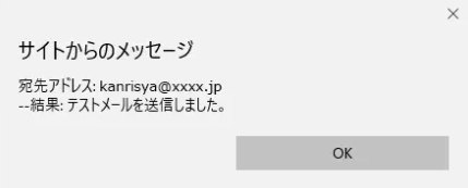 通知内容を設定する前に、メール設定が正しいかをテストメールを送信して確認します。