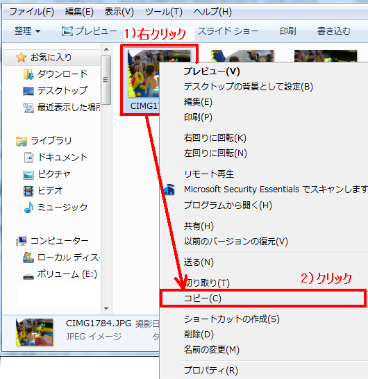 【Windows7】パソコンに保存されたデータをUSBメモリーにコピーする方法を知りたいのですが?