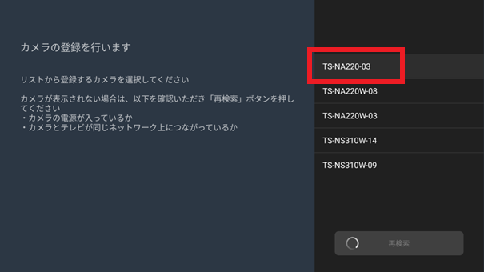一覧から、登録したいカメラを選択しリモコンの「決定」ボタンを押します。