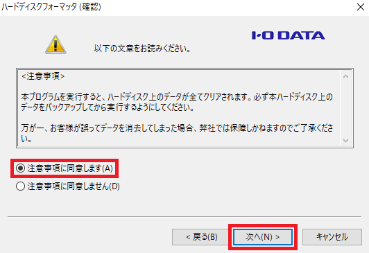 1.ソフトウェア「I-O DATA ハードディスクフォーマッタ」をインストールします。