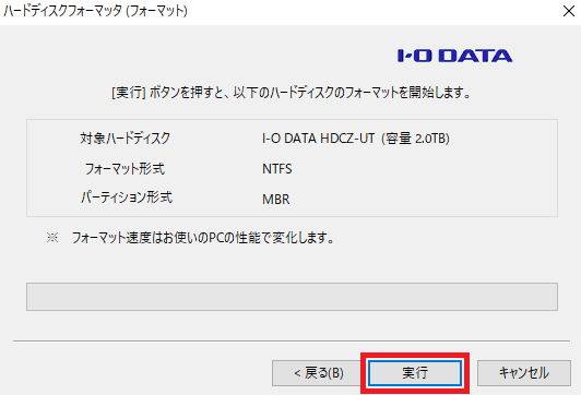 2.ソフトウェア「I-O DATA ハードディスクフォーマッタ」にてフォーマットを実行します。