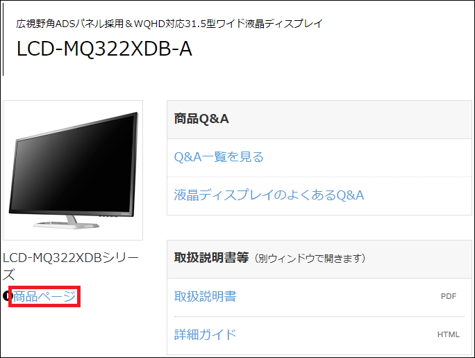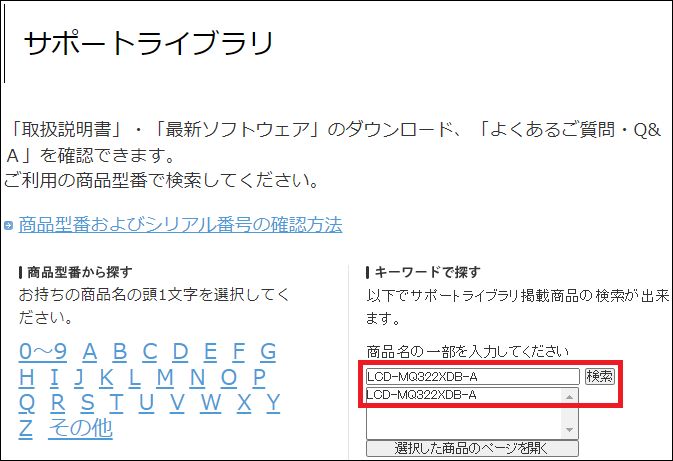 今回は例として「LCD-MQ322XDB-A」を検索します。