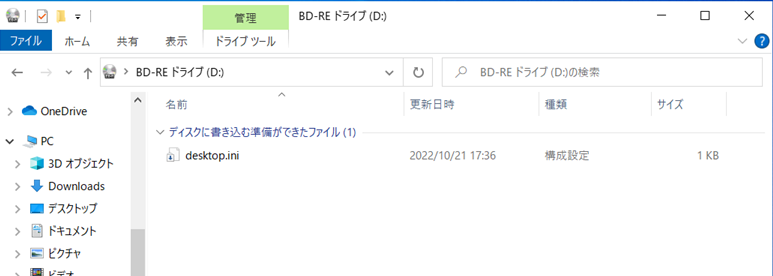書き込みたいデータを先程のBD-REドライブにドラッグ&ドロップします。