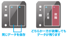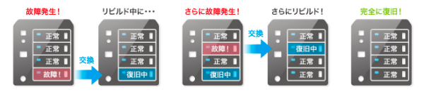 ペアとなるディスクが同時に故障しない限り、最大2台までのディスクに障害が発生しても復旧できます。