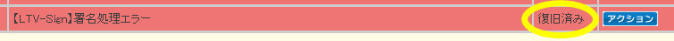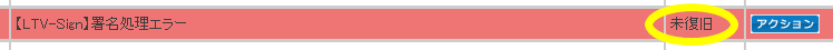タイムスタンプが問題なく押印できている状態でも、NarSuSから署名処理エラーの通知が来ている場合、過去に発生した署名処理エラーのイベントが「未復旧」の可能性があります。