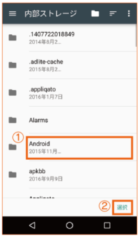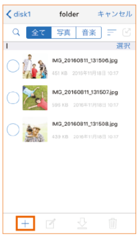 フォルダーの場合、アップロードするフォルダーへ移動し、[選択]をタップします