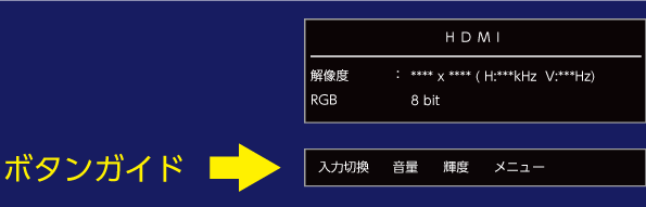 1.モニター右下のボタンをどれか押し、ボタンガイドを表示します。