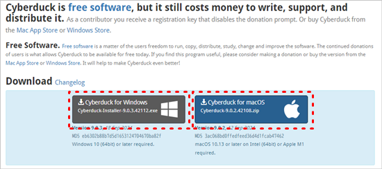 当社ではオープンソースソフトウェア「Cyberduck」を使用することでこれらの操作が可能なことを確認しております。(2024年9月25日時点)
