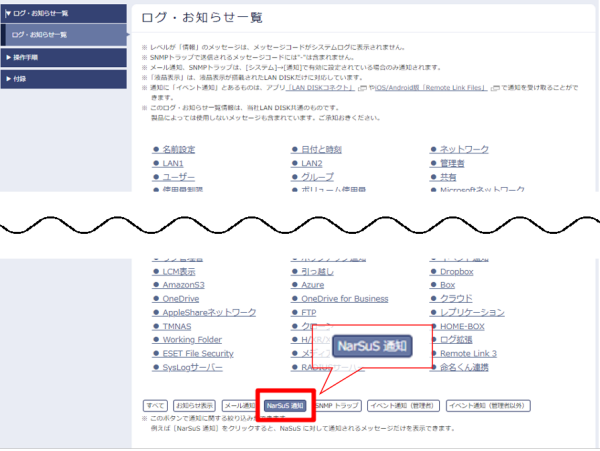 【LAN DISK H/X/Aシリーズ】NarSuSのイベント情報に通知されるログをしりたい