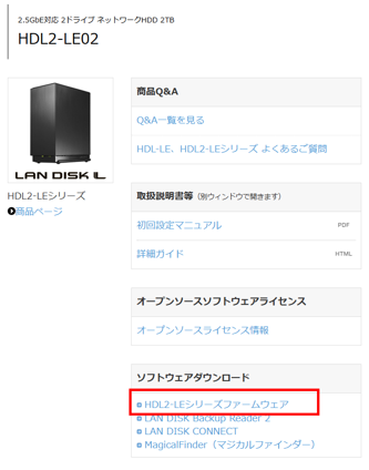 【LAN DISK Lシリーズ】現在のファームウェアバージョンを確認したい/ファームウェアを更新したい