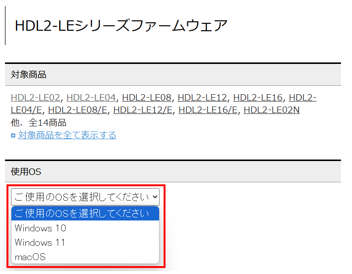 ※以下より製品型番を選択し、「ソフトウェアダウンロード」欄のファームウェアよりファイルをダウンロードしてください。