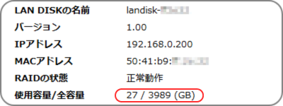 【LAN DISK Lシリーズ】内蔵ボリュームの使用量を確認したい