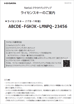 NarSuSクラウドバックアップマニュアル「ライセンスキーを新規登録する」