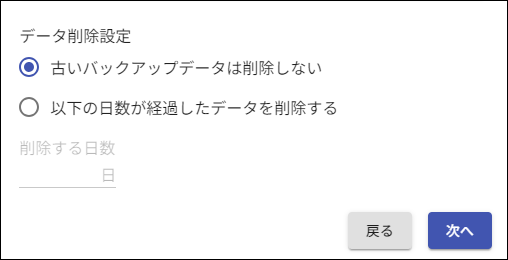 ※「以下の日数が経過したデータを削除する」を選択した場合、日数は1~99まで設定できます。