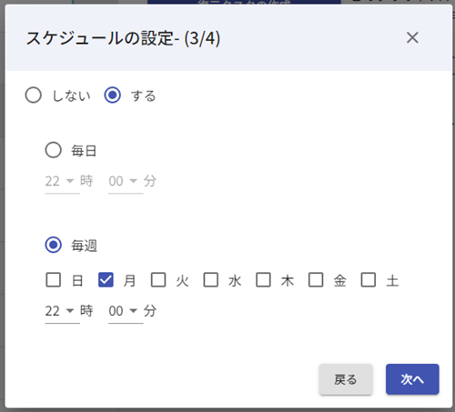 スケジュール実行が可能です。「毎日」もしくは「毎週」にて設定が可能です。
