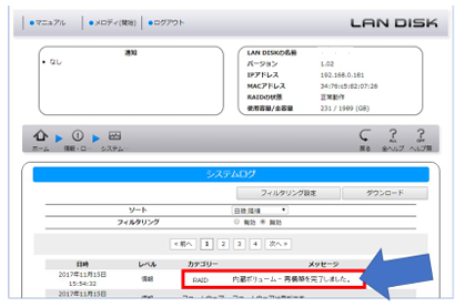 再構築中でもLAN DISKは通常通りご利用いただいて問題ございませんが、 通常より動作が遅くなる場合がございます。