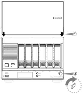 ※HDD1本抜けた状態での起動となるため構成異常([STATUS]ランプが赤点滅)で起動します。