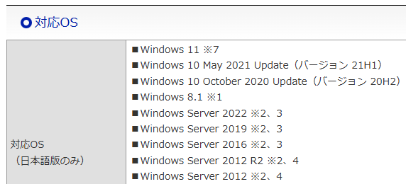 対応OSに掲載されていない場合は、動作未確認の組み合わせとなります。