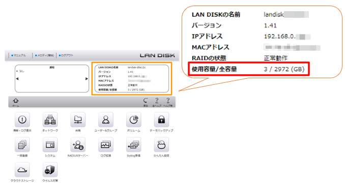 【LAN DISK Lシリーズ】空き容量を確認したい