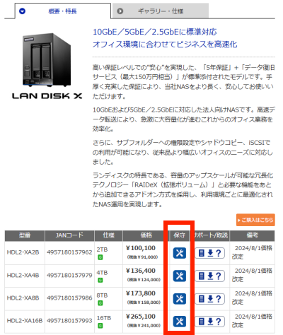 【LAN DISK】ISS有償保守の対象製品かどうか確認したい